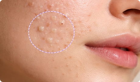 Открытые черные точки или закрытые комедоны в виде светлых узелков. Это начальная стадия заболевания, которая преимущественно связана с фолликулярным гиперкератозом.